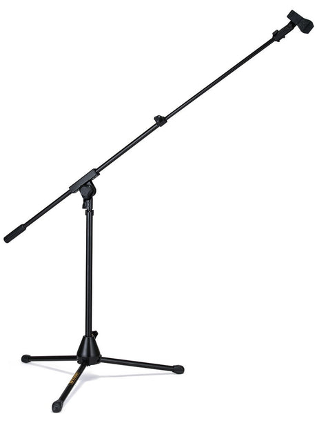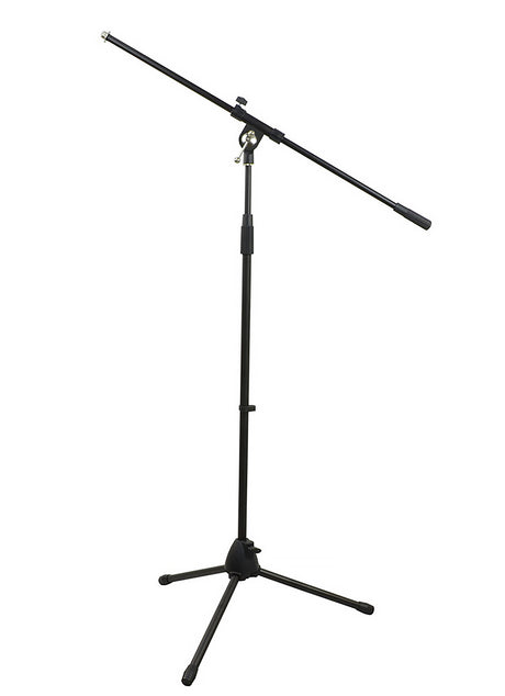 Un supporto con braccio telescopico (boom-arm) permette di posizionare il microfono con maggiore flessibilità e precisione. Il microfono si fissa sul braccio, chiamato boom, utile per batteristi, chitarristi o posizionamenti complessi in studio e sul palco.