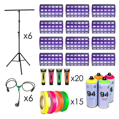 Spesso i club iniziano i tardi eventi di "natminton" con nastro neon sul pavimento, un paio di lampade UV a LED e un po' di stick luminosi, ma per avere un vero natminton bisogna andare "all-in" quindi contatta il nostro reparto vendite per ulteriori informazioni.
