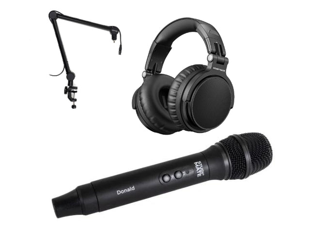 Box contains: 1x Donald USB microphone, 1x microphone holder, 1x 1.8m cable, 1x user manual
