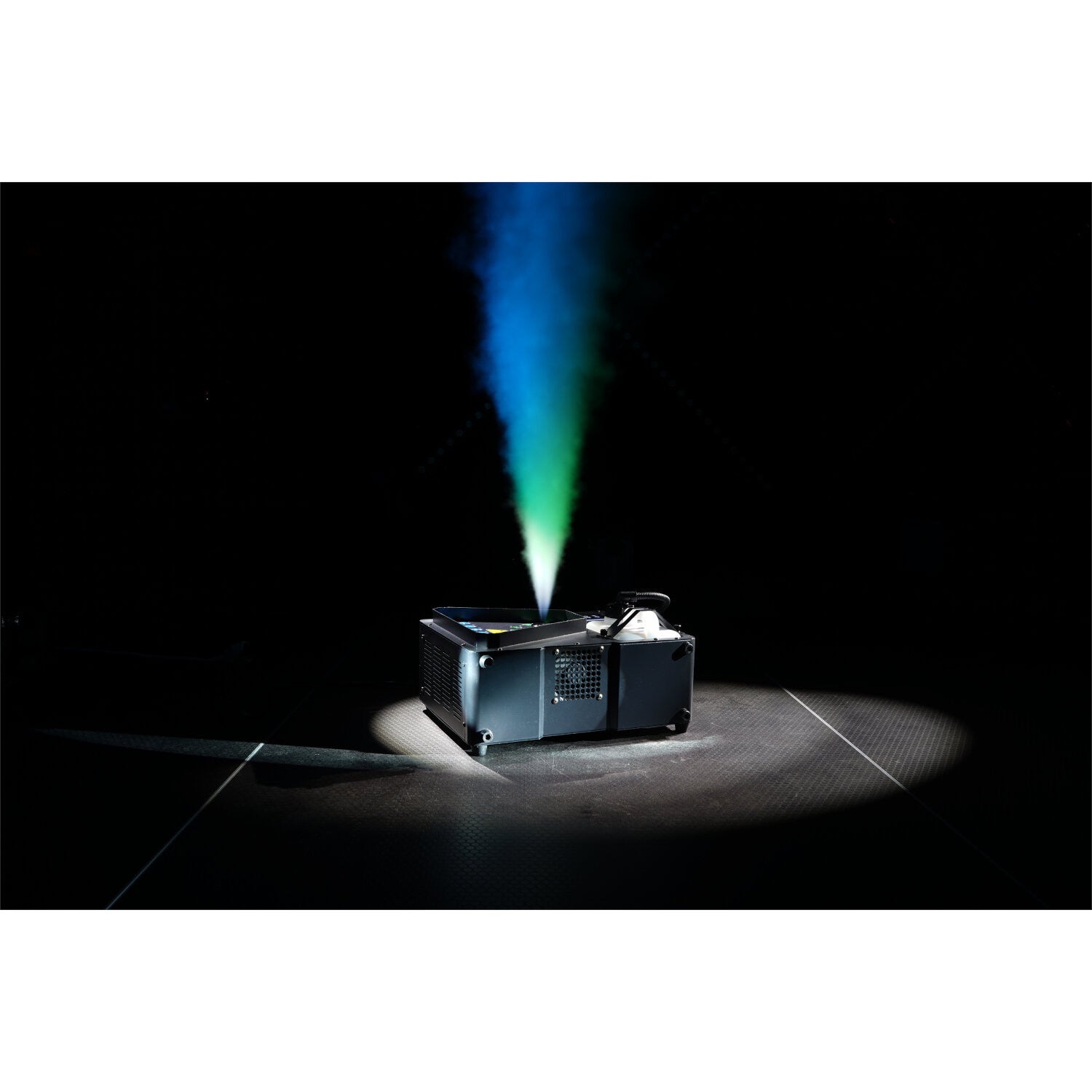 - DMX-controlled 1800W smoke machine with RGBA & RGBW LEDs