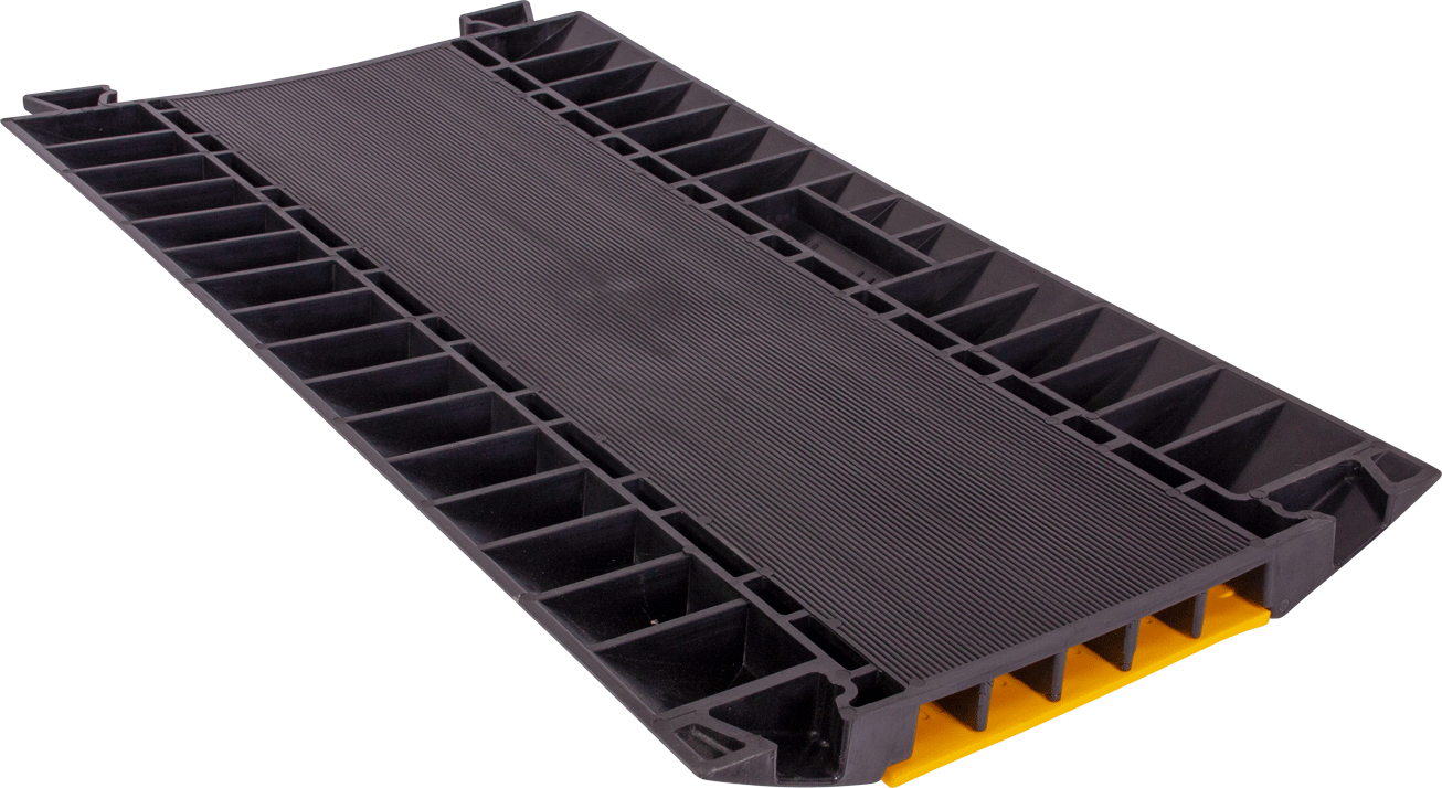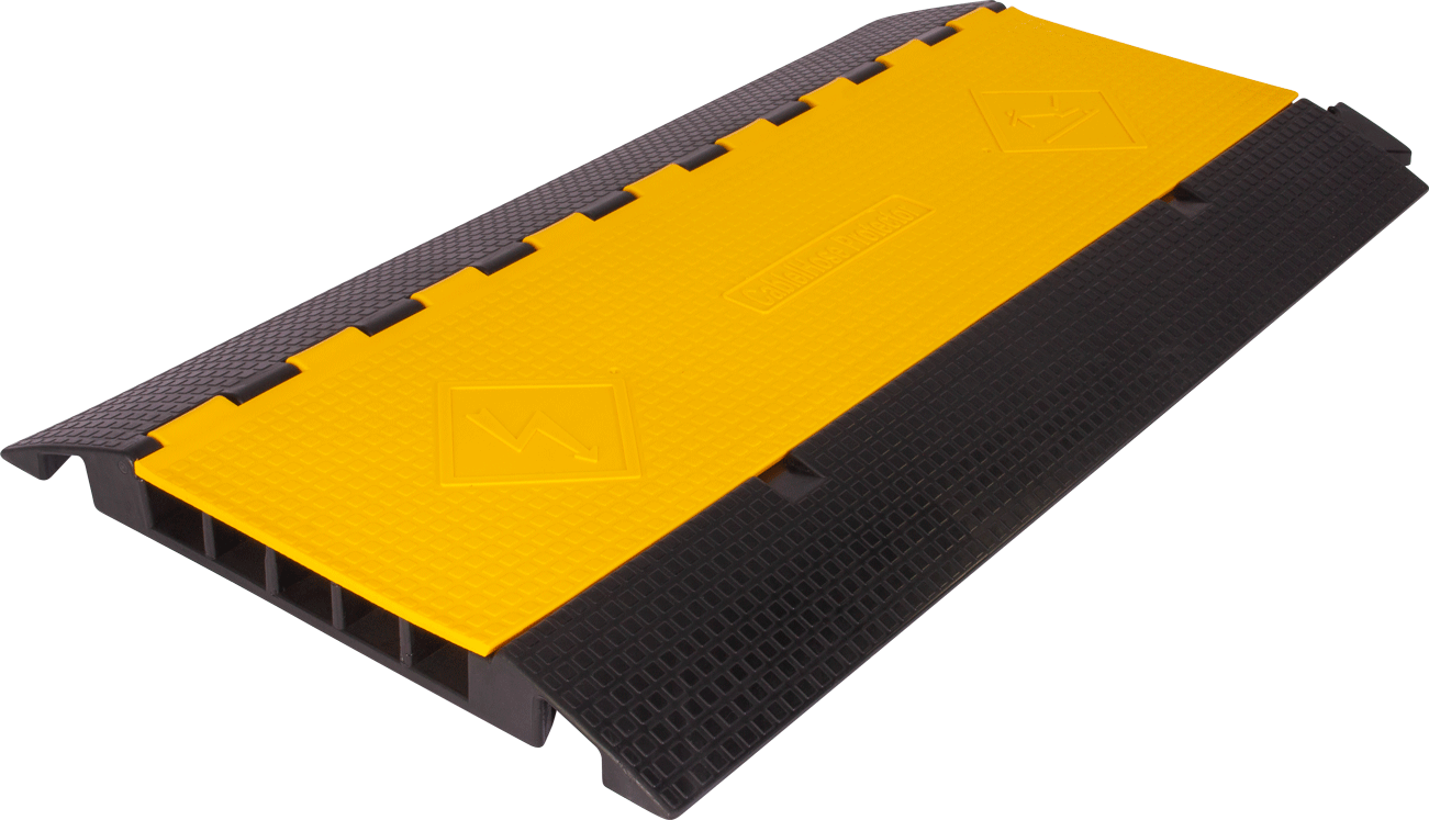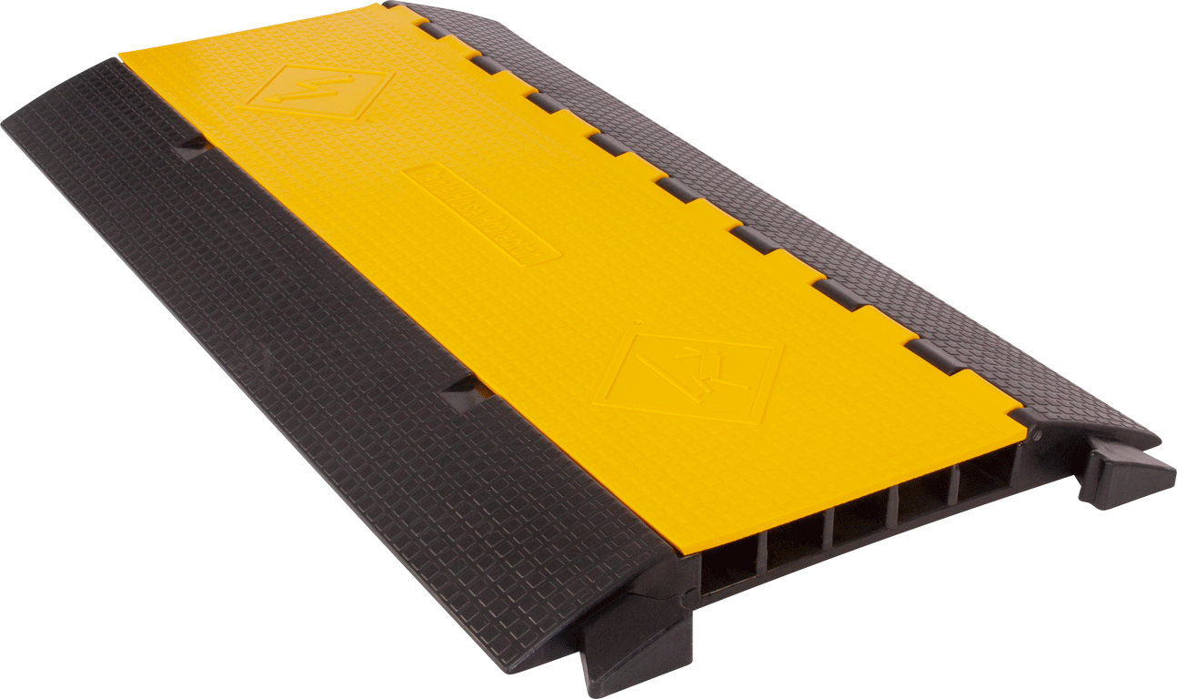Rampas cavo professionale e robusta con separazione tra i canali e dotata di un rivestimento giallo per migliorare la visibilità sul pavimento.