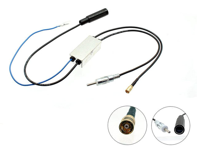DAB Splitter - DIN female to DIN male. With SMB connector. Allows DAB installation while using the existing antenna. Only for cars WITHOUT antenna amplifier.