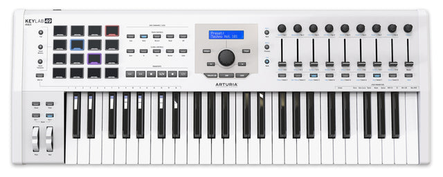 - Arturia KeyLab MkII features include a pressure-sensitive keyboard with 49 high-quality keys, 16 RGB backlit pads, 9 faders, 9 knobs, and dedicated DAW and transport controls. Its many connectivity options also include CV/Gate outputs, so you can control equipment of any kind.