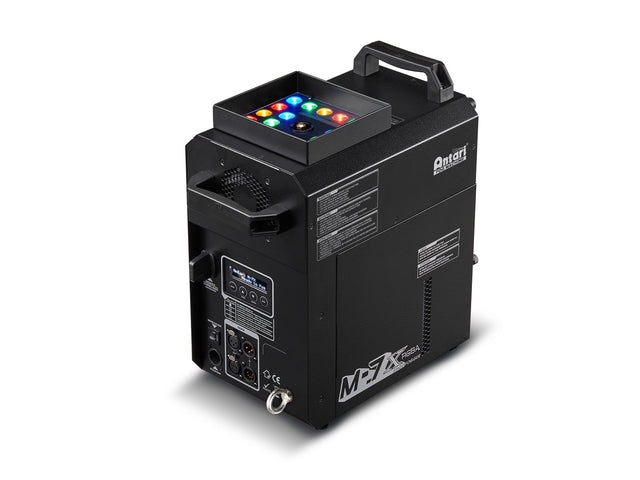 - 1500 W fog machine with LED lighting and adjustable vertical/horizontal output.