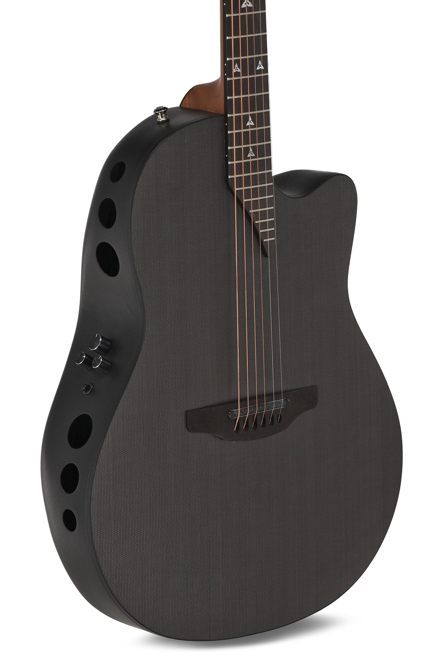 - Ebony fingerboard, stained walnut bridge, 24 frets