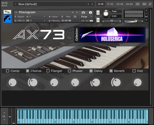 Un strumento Kontakt ampiamente multi-campionato con 32 preset di alta qualità dalla vasta collezione di oltre 1000 preset disponibili nelle AX73 Collections. Include preset dei sound designer Mark Gijsman, Simone C, Sonic Freaks, Saif Sameer, Summa, SB-SIX, Theo Niessink, JACK, Daniel Stawczyk, Heat Audio, Nori Ubukata, Lukas Lundh, Allert Aalders e Solidtrax.