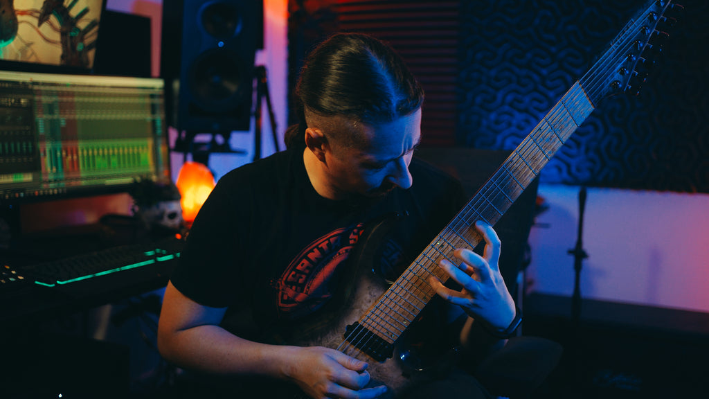 Axe Machina è una potente libreria virtuale di chitarra elettrica multi-sampled progettata per liberare una pura distruzione metallica. Craig Peters ha campionato la sua chitarra a 7 corde multi-scalata Kiesel Aries, accordata in A Standard. Questo strumento presenta 24 tasti, un corpo in swamp ash, un manico in acero birdseye, pickup Guitarmory Polaris con corde D'Addario XL 10-64 gauge. Il corpo in swamp ash ha uno stile e un sapore unici, insieme a un robusto tono naturale e risonanza.