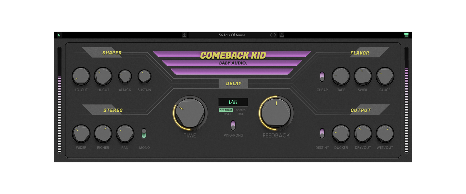 Comeback Kid ti offre una qualità del suono cristallina insieme alla versatilità per coprire una varietà di compiti di mixaggio, da riflessi sottili a echi ipnotici. Potrebbe diventare il tuo nuovo delay di riferimento!