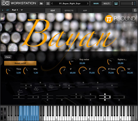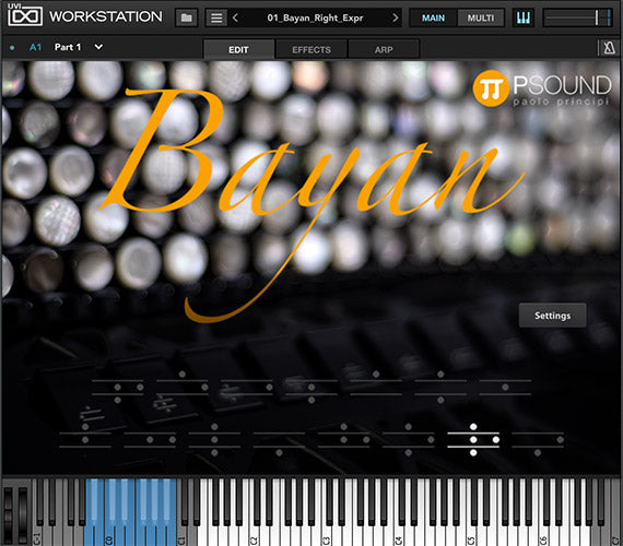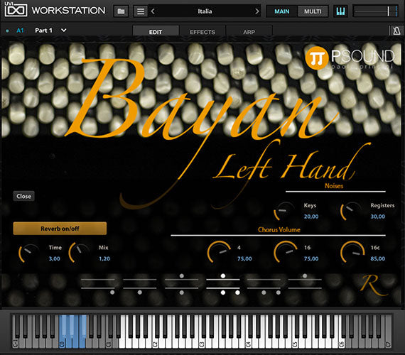 Il bayan è un tipo di fisarmonica a bottoni cromatica sviluppata in Russia all'inizio del XX secolo. Viene utilizzato per la musica classica e contemporanea. Lo strumento campionato originale è l'incredibile Bugari Bayan Prime. PSound Bayan è la fisarmonica virtuale più accurata disponibile.