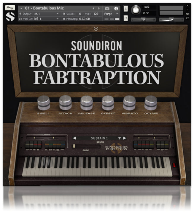 Bontabulous Fabtraption è stato registrato in uno studio asciutto utilizzando un paio di microfoni Neumann TLM 103 a diaframma largo e linea diretta. Abbiamo registrato molti preset di stock con sustain, staccato, campioni di accordi magici e loop di batteria. L'ottava inclusa, il vibrato e il rack FX ti offrono un'interfaccia facile da usare per personalizzare e modellare completamente il suo suono analogico grasso per adattarsi a una varietà di stili creativi.