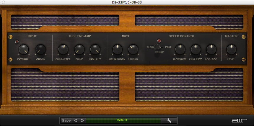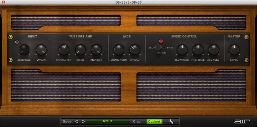 DB-33 Tonewheel Organ è un organo virtuale che ricrea i suoni e le opzioni di controllo degli organi a ruota tonale classici come l'Hammond B3, così come i cabinet di altoparlanti rotanti attraverso cui vengono spesso suonati. Include 122 suoni preimpostati più un cabinet rotante a convoluzione extra-realistico e un'emulazione di overdrive a valvole. Il cabinet di altoparlanti rotanti può anche essere utilizzato come un effetto a sé stante su un canale audio.