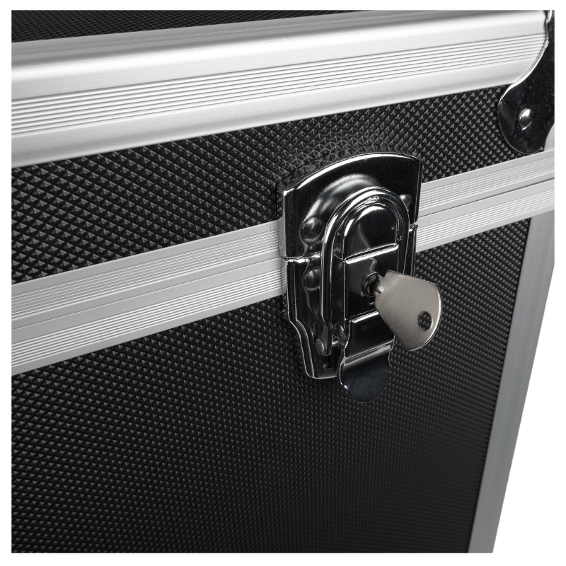 Med solide håndtag på siderne samt et praktisk bærehåndtag er kassen nem at transportere. De to låsbare kliklåse giver ekstra sikkerhed og gør det muligt at aflåse kassen med de medfølgende nøgler.