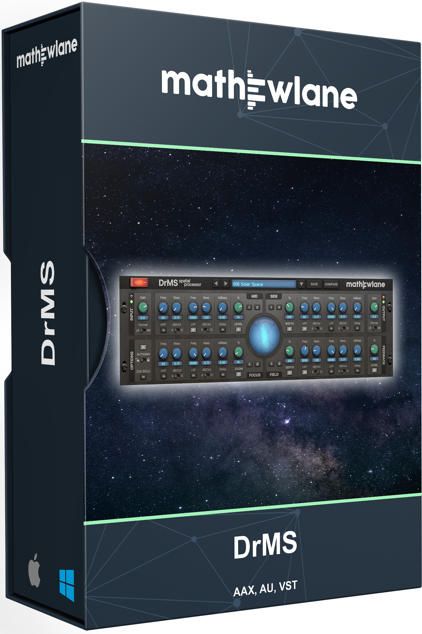 DrMS is a unique spatial processor, available as AAX/AU/VST/VST3 plug-in, with a wide range of applications for mixing, mastering and post production - going from simple MS (Mid-Side) encoding/decoding, over stereo field width and depth enhancement, to fixing mono compatibility issues and more.