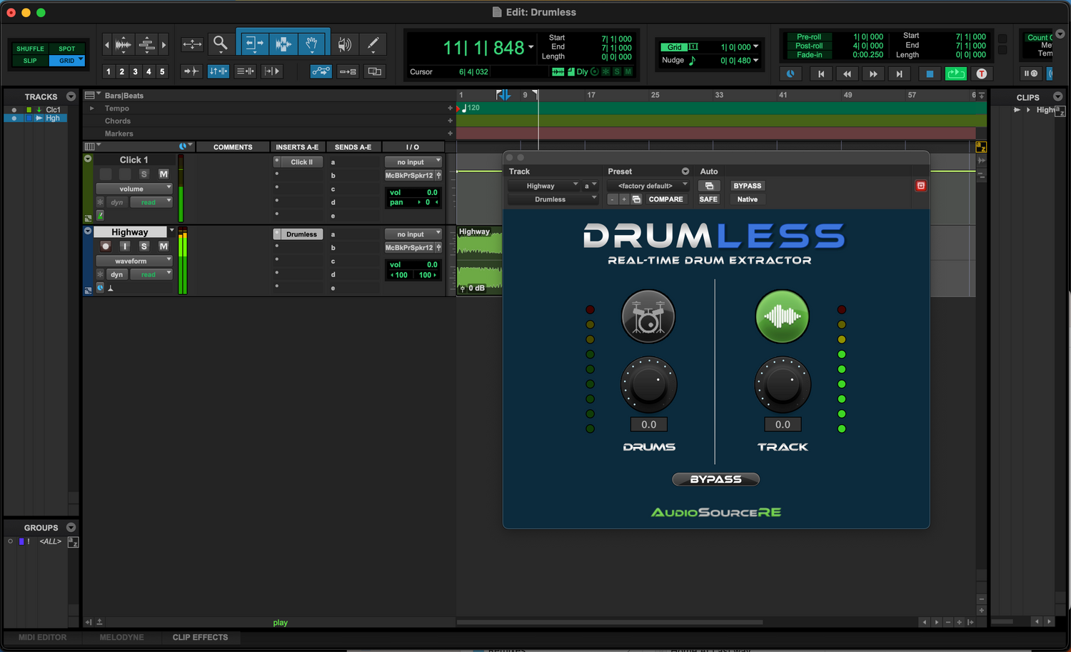 DRUMLESS allows you to rebalance drum and instrumental parts, from small adjustments to fully soloed drums.