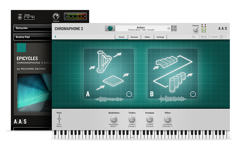 The 111 Epicycles presets adventurously delve into enigmatic and uncertain lands. Nine categories structure the series of patterns and textures: Soundscapes, Basses, Plucked Strings, Keys, Synths, Strings and Pads, Percussions, Arps, and Effects.