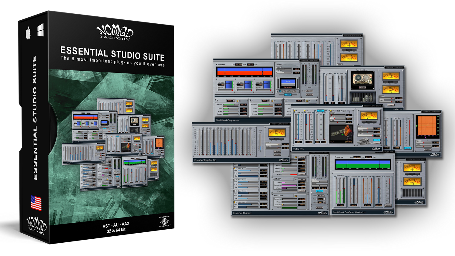 No longer must you suffer with dry, lifeless tracks that lack the creative spark you need to stand out from the crowd. Nomad Factory's Essential Studio Suite gives you the 9 most important plug-ins you'll ever use.
