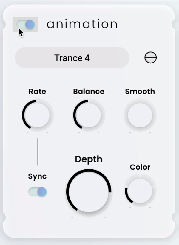 Add layers of sonic paint to your music with ANIMATION. Whether you want to create gentle ripples, choppy stutters or pulsating beats, our range of selectable shapes and adjustable parameters provide a colourful palette of sound.