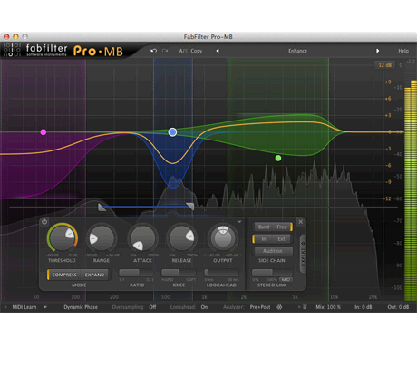 La compressione e l'espansione multibanda sono strumenti potenti, ma notoriamente difficili da configurare e controllare. Entra FabFilter Pro-MB: rende l'elaborazione dinamica multibanda intuitiva ma potente allo stesso tempo.