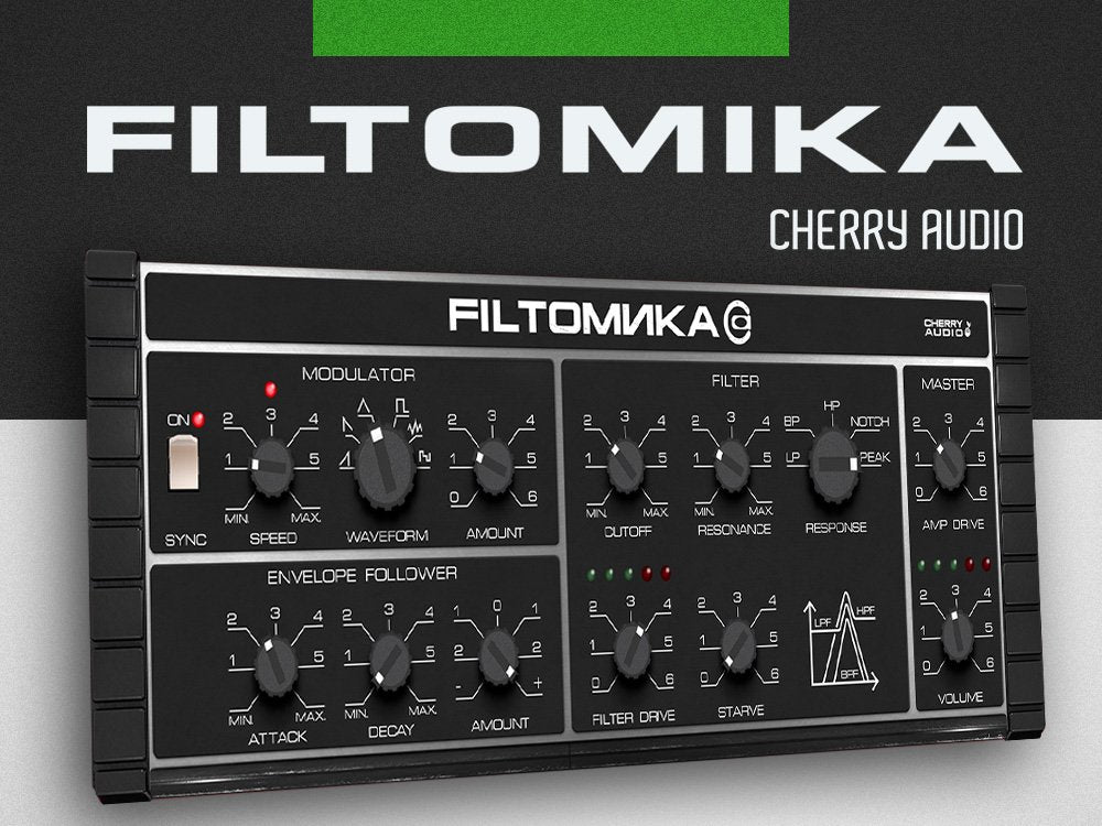 Filtomika è un plugin effetto che emula la sezione di filtro selvaggio del sintetizzatore sovietico Polivoks degli anni '80 ed è basato sul filtro multi-modal espanso introdotto nello strumento virtuale Atomika di Cherry Audio, premiato. Caratterizzato da design DSP modellati su circuito dal rinomato sviluppatore Mark Barton, Filtomika include anche altri metodi di Atomika che vanno oltre l'hardware originale. Questi miglioramenti includono una selezione ampliata di forme d'onda per il suo modulatore sincronizzabile, modalità di risposta del filtro aggiuntive e i controlli unici Starve, Filter Drive e Amp Drive di Atomika, ampliando ulteriormente la sua palette sonora distorta.