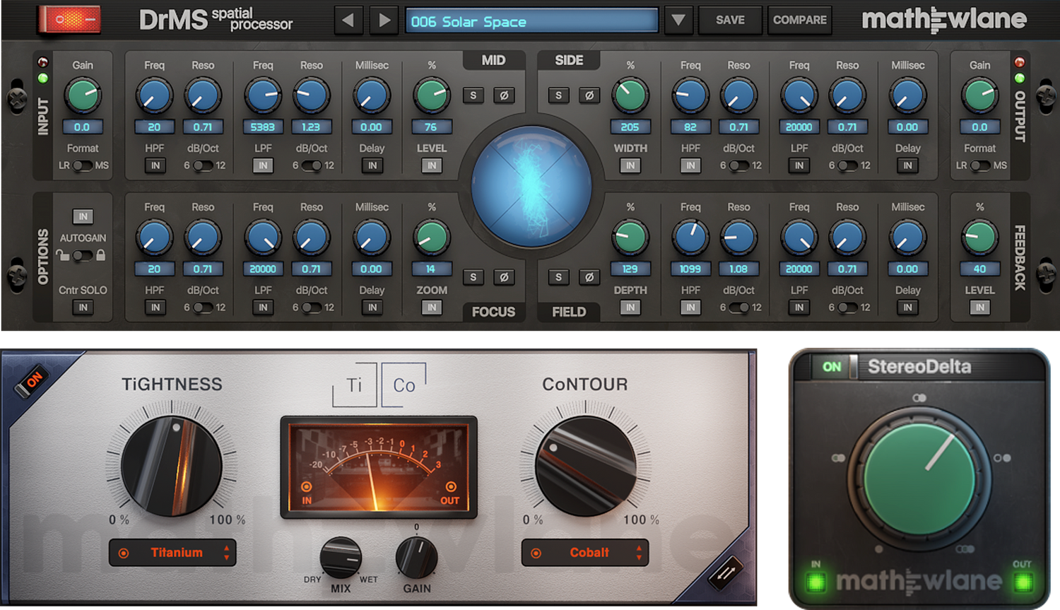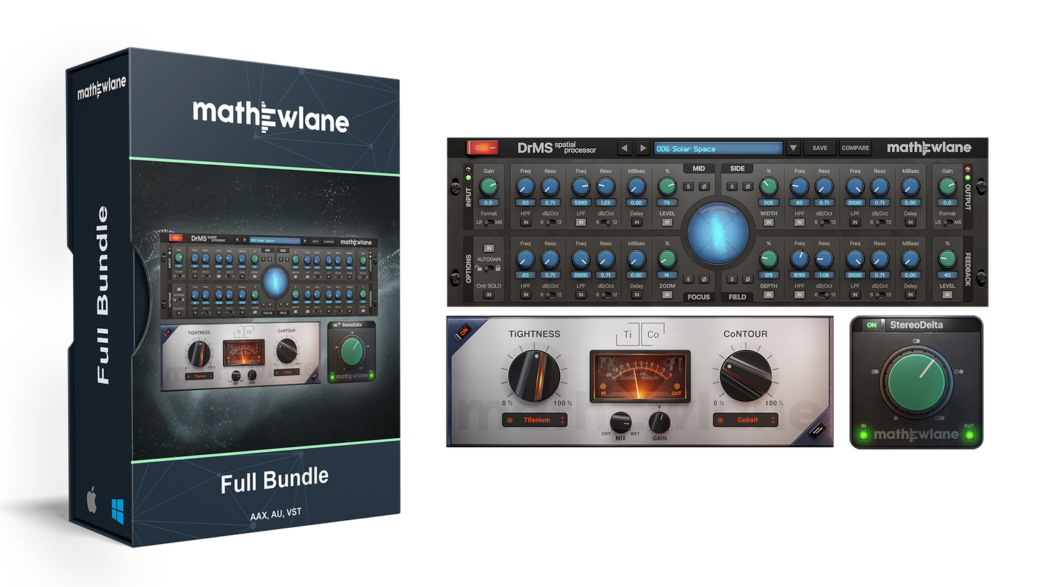 The Mathew Lane Full Bundle combines the renowned DrMS spatial processor together with the analog style TiCo compressor & character plug-in, as well as the easy-to-use StereoDelta one-knob spatial processor – all in one purchase!