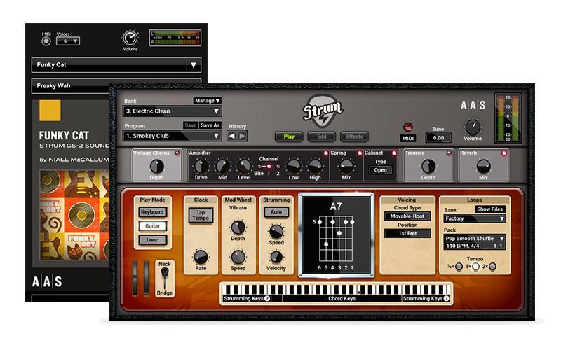 With Funky Cat, sound designer Niall McCallum transports Strum GS-2 to the golden era of funk — the foundational experiments in groove from the likes of Sly & The Family Stone, James Brown, and The Meters. From choppy 16th-note riffs loaded with tight, muted stabs to slick rhythmic chord progressions, this kaleidoscopic new set takes the very best from the forefathers of the game and sends the whole package hurtling into the present.
