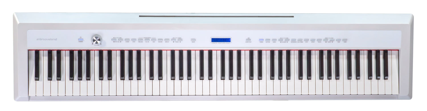 The Grooveland P22 Electric Piano (White) is the perfect choice for anyone looking for a digital piano with professional sound, many features, and elegant design – complete with stand and pedals, ready to play right away.