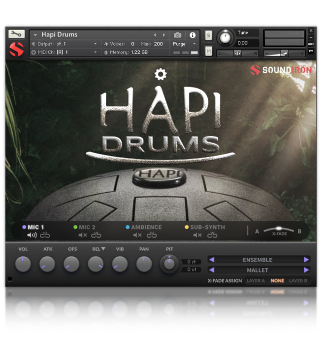 Abbiamo registrato quattro strumenti, catturando ognuno di essi con un paio stereo ampio di Neumann TLM 103 a grande diaframma e un binaurale Rode NT-SF1, per fornirti due opzioni tonali distinte. Gli strumenti includono il modello "Origin" D minore (D3 - A4), un paio di modelli medi "Slim Tunable" (A3 - E5) e il piccolo Tini, acuto (A4 a A5). Ogni modello può essere caricato separatamente - inclusa la possibilità di suonare singole lingue - oppure puoi suonarli tutti insieme come una scala cromatica combinata. Abbiamo suonato ciascuno di essi con mazze di gomma morbida, plettro di metallo duro e pennelli jazz in nylon. Con la nostra interfaccia modulare multi-strato intuitiva, godrai della completa libertà di mescolare, sovrapporre, riaccordare e personalizzare ogni suono a tuo piacimento.