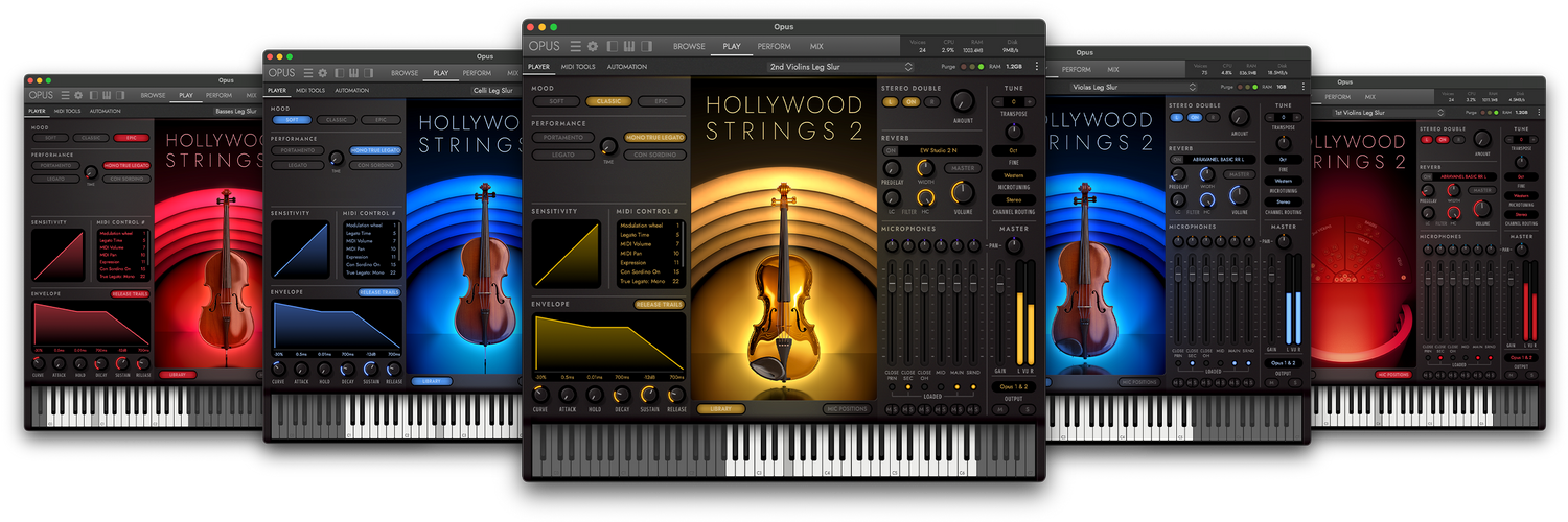 Hollywood Strings 2 vanta un'ampia libreria di 134 strumenti meticolosamente realizzati, offrendo una gamma di possibilità sonore senza precedenti, inclusi i migliori trilli e passaggi giocabili mai registrati. Con oltre 160 gigabyte di suoni ampiamente campionati, ogni nota risuona con un'autenticità senza pari, catturando l'essenza di ciascun strumento con dettagli mozzafiato. E alimentato dal nostro motore OPUS all'avanguardia, puoi scaricare istantaneamente solo gli strumenti individuali di cui hai bisogno per un accesso immediato o scaricarli tutti, a tua scelta.
