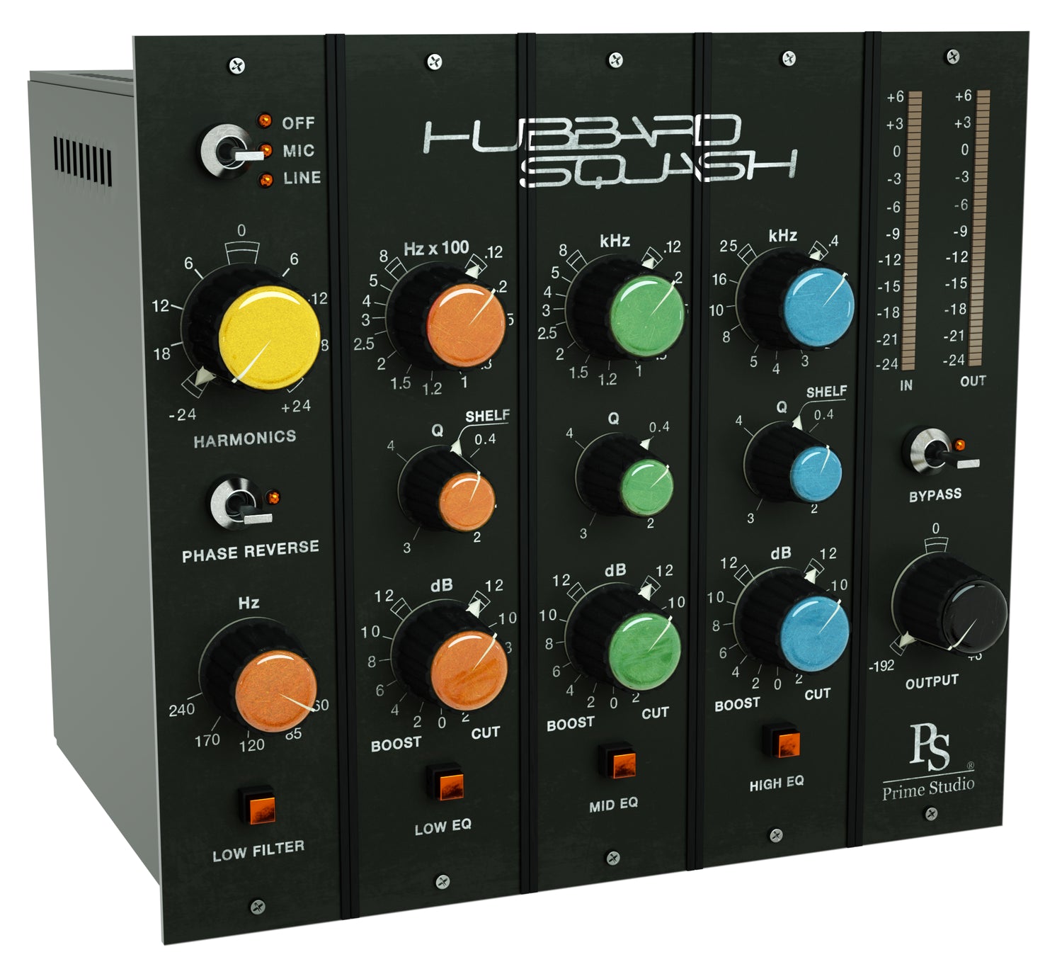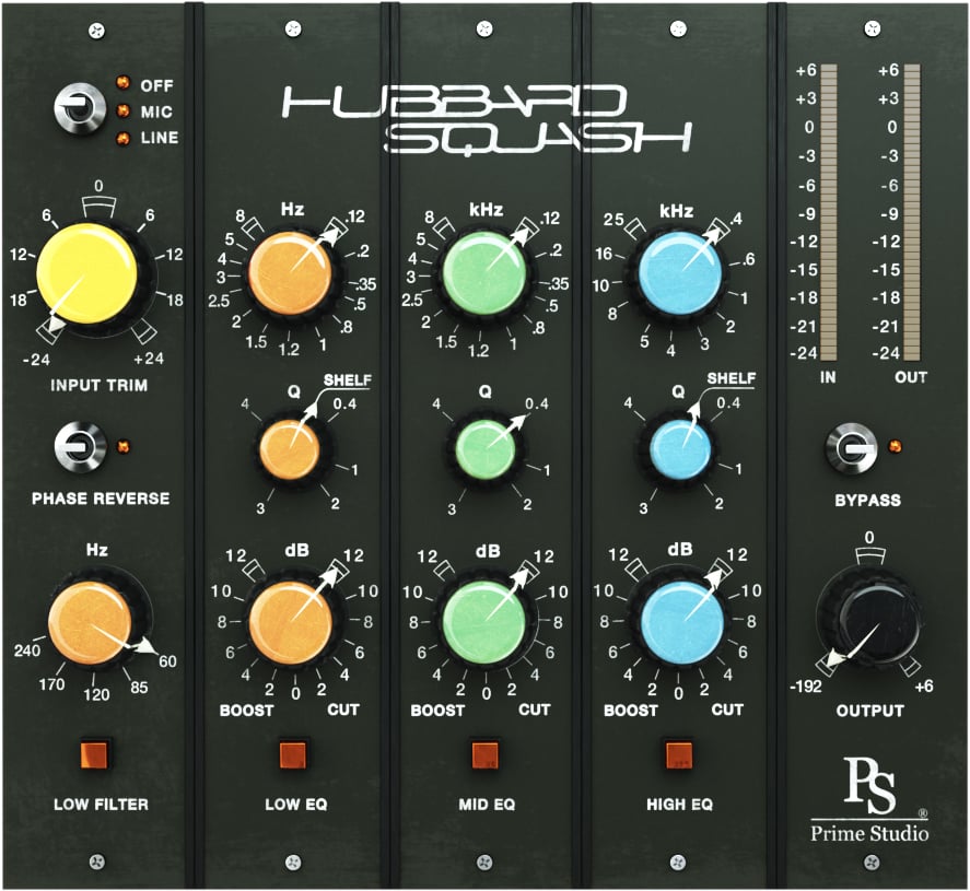 Prime Studio® Hubbard SquashSmooth, più liscio, Hubbard Squash. Equalizzatore stereo completamente parametrico a tre bande classico che offre un tono ricco per bande di frequenza basse, medie e alte separatamente attivabili e un filtro passa-alto.