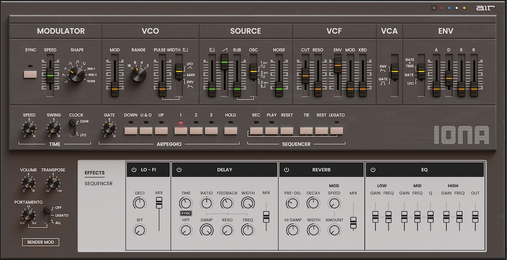AIR Music Tech præsenterer Iona, en omhyggeligt modelleret genskabelse af den legendariske Roland SH-101 synthesizer.