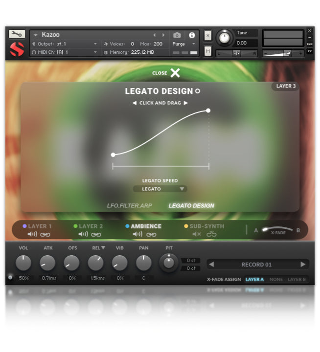 - Flexible and intuitive multi-layer user interface controls, with LFO, filter, glide, and arpeggiator