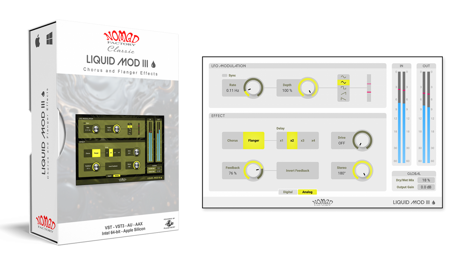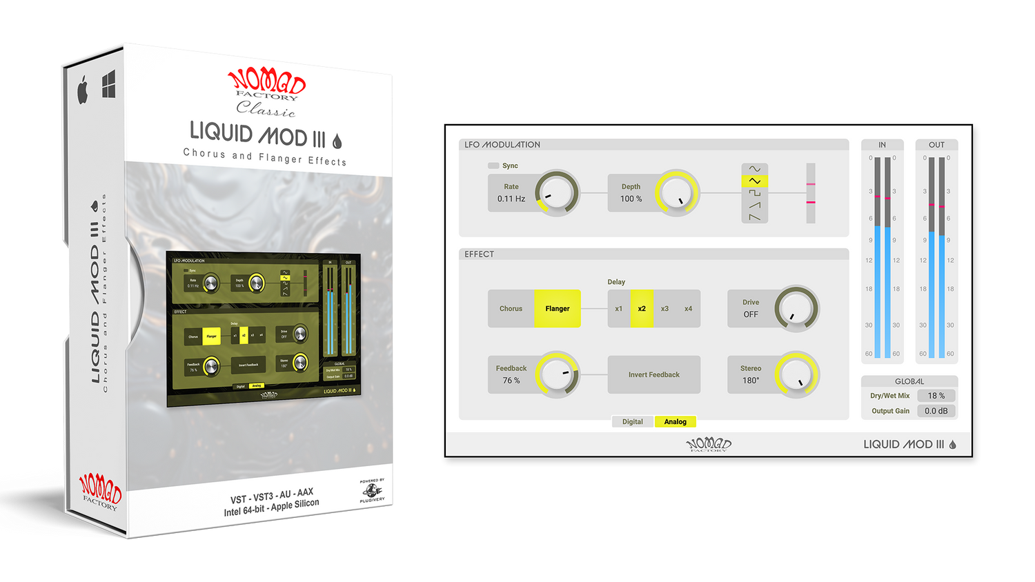 Liquid Mod III captures the classic modulation sounds that have shaped decades of music production. From silky chorus and spacious flanging to expressive vibrato, this plugin brings authentic vintage character to your mixes.