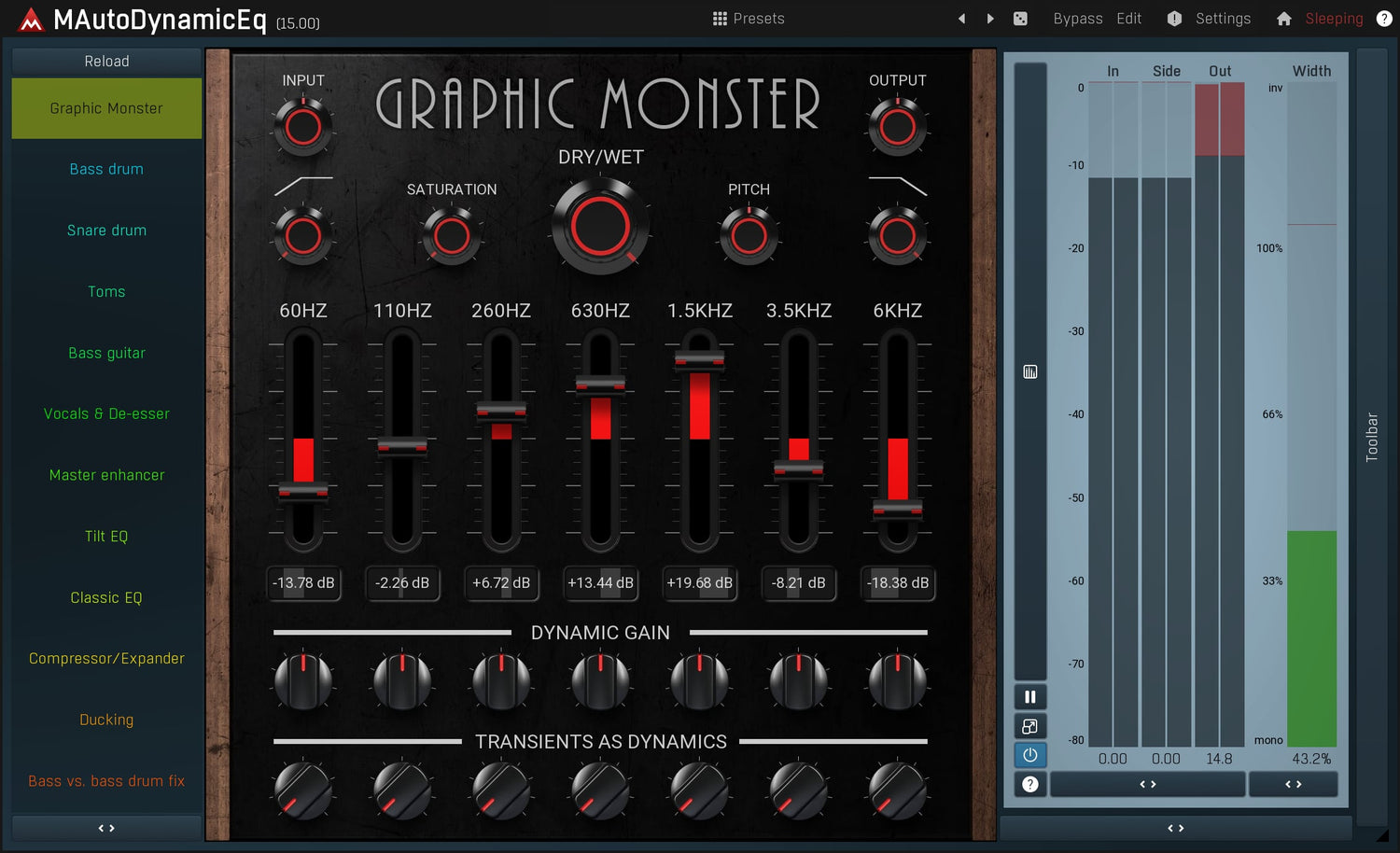MAutoDynamicEq is so much more than an unbelievably transparent and musical sounding equalizer with a gorgeous interface stuffed with amazing features. It is an innovative plug-in introducing dynamic processing to the music world.