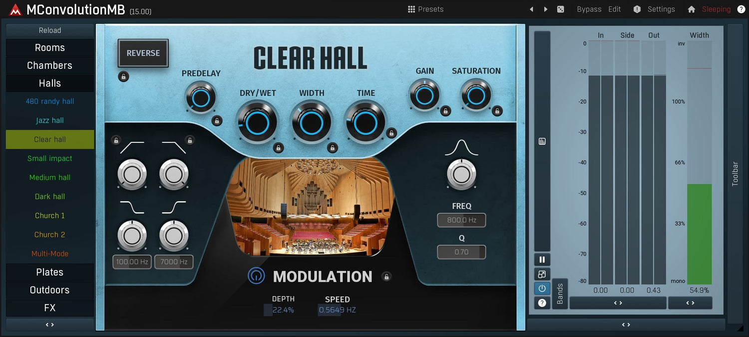 Convolution is an essential audio processing technology, capable of recreating extremely realistic reverbs, microphone and box simulations and even other plugins. MMultiBandConvolution can do it all with pristine audio quality and amazing flexibility.