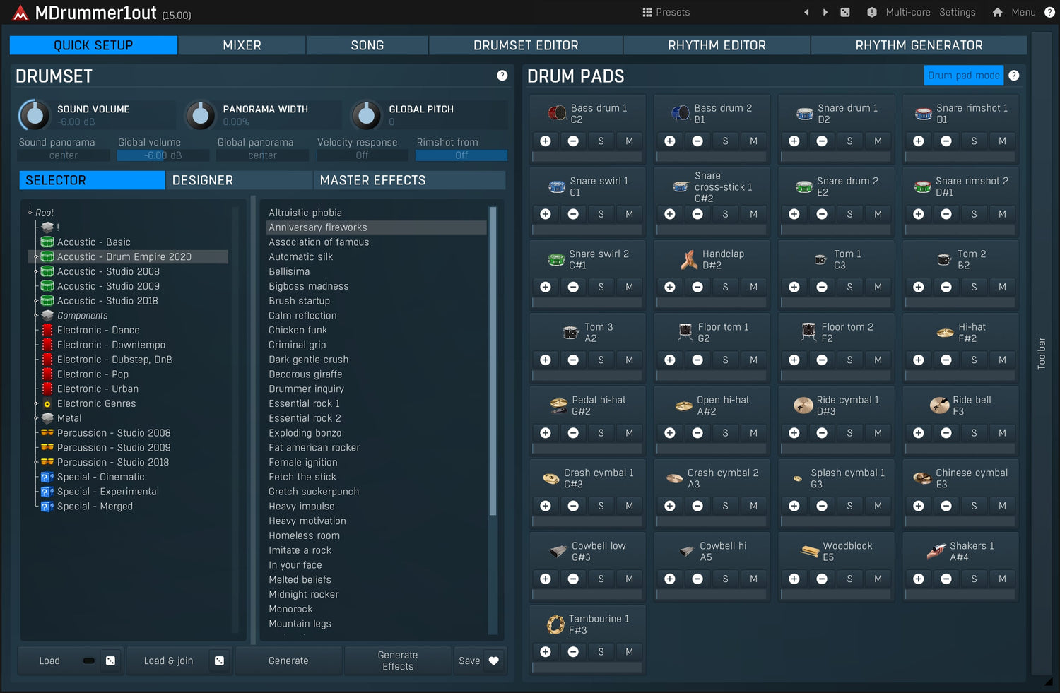 MDrummer is simply the ultimate drum machine and virtual drummer. It makes arranging drum tracks and realtime performances quick and simple and the possibilities are just endless...
