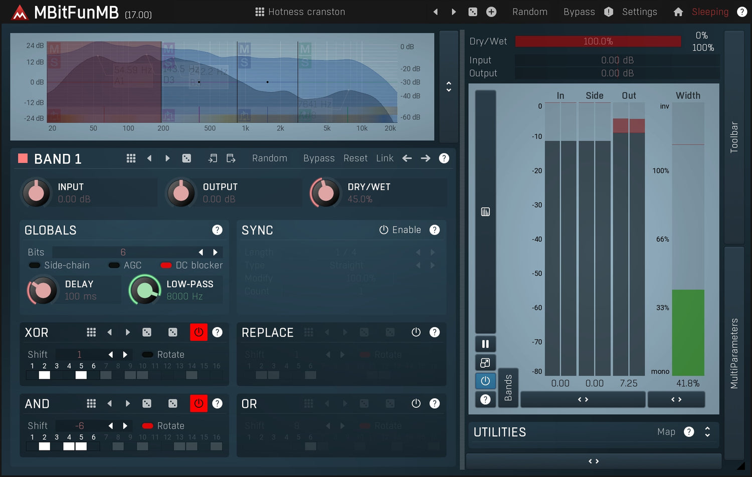 Cambiando il 16° bit non farai molto, ma può comunque darti quel carattere mancante. Il vero potere è però nella brutalità che il plugin può applicare. 4 processori possono rovinare qualsiasi bit, fonderli con versioni spostate dello stesso campione, con un campione ritardato o persino con qualsiasi cosa tu invii attraverso il side-chain del plugin. Creatività illimitata e risultati principalmente fatali, fatali per l'audio originale, non per le tue canzoni o il tuo sistema.