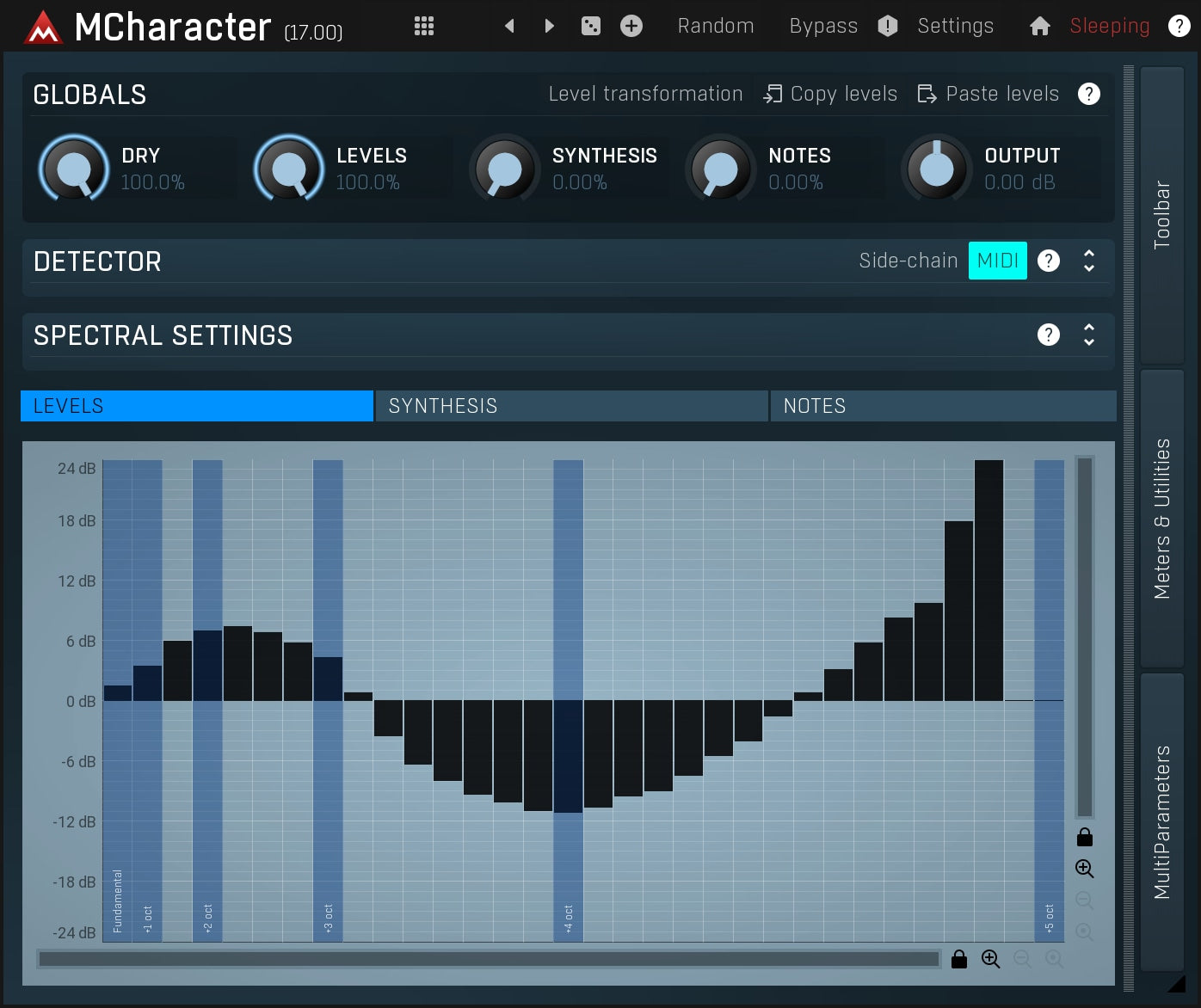 La maggior parte degli strumenti audio ha un carattere distintivo definito da armonici e formanti. I formanti sono abbastanza statici nello spettro audio, quindi puoi cambiarli direttamente con un equalizer. Gli armonici, tuttavia, sono più problematici, perché seguono l'intonazione. MCharacter ti consente di controllare i livelli dei primi 32 armonici in modo molto semplice ed efficace. Lavorando direttamente nel dominio spettrale, la capacità del plugin di rilevare l'intonazione è eccezionale e le modifiche sono istantanee, il che lo rende superiore agli equalizzatori tradizionali in quasi tutti i modi.