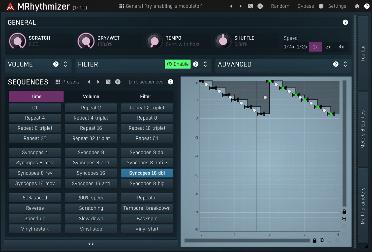 Tutti conosciamo gli scratching, ma con MRhythmizer puoi graffiare facilmente utilizzando un semplice cursore, oppure puoi usare i modulators e il plugin lo farà automaticamente!