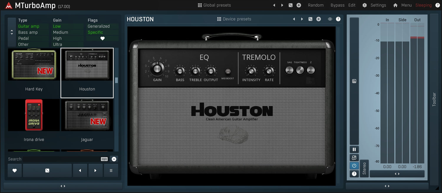 MTurboAmp viene fornito con quasi 30 teste di amplificatori e una dozzina di pedali di distorsione. Ma questo numero cambierà costantemente - con ogni rilascio - perché non smettiamo di lavorare su nuovi dispositivi.