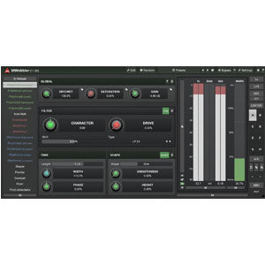 MWobbler è un filtro distorcente unico progettato originariamente per produrre bassi wobbling dubstep, ma si è rivelato essere un ottimo filtro multifunzionale per praticamente qualsiasi materiale audio, da pad ritmici, organi rotanti a bassi guidati da batteria...