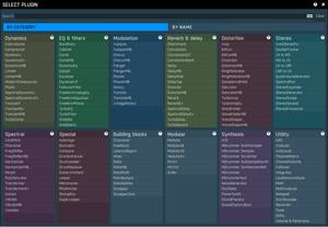 Flanger, compressore, equalizzatore dinamico, filtro, delay, riverbero, convoluzione, armonizzatore, dinamiche spettrali... tutto! Contiene persino MPowerSynth!