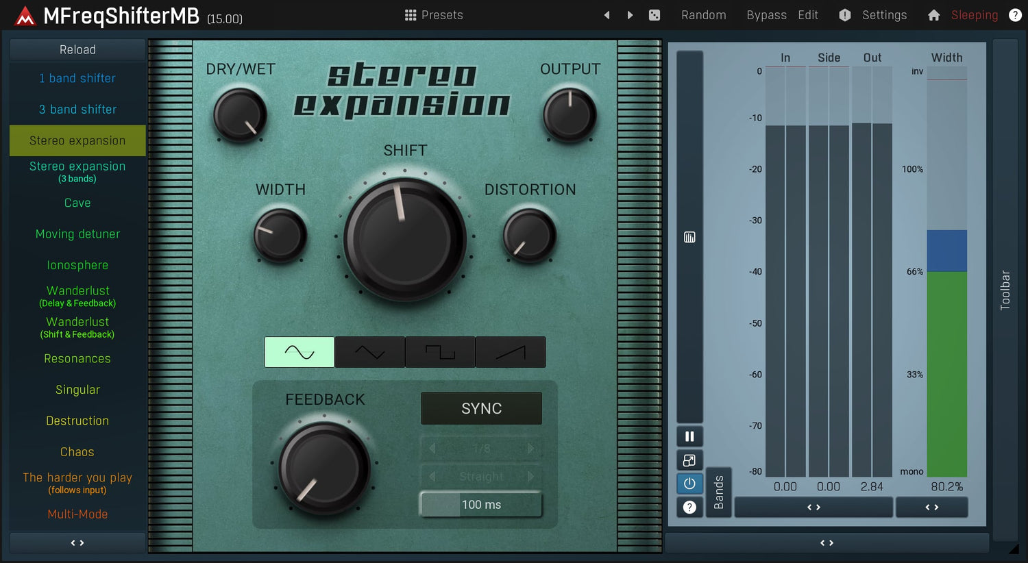 MMultiBandFreqShifter is a revolutionary frequency shifting plugin which breaks down the harmonic content of the audio. Use it to fatten the sound, produce mild stereo expansion, or even provide complete sound destruction. Whether you simply need an enhancement tool, or are searching for a truly original sound, this is the plugin for you!