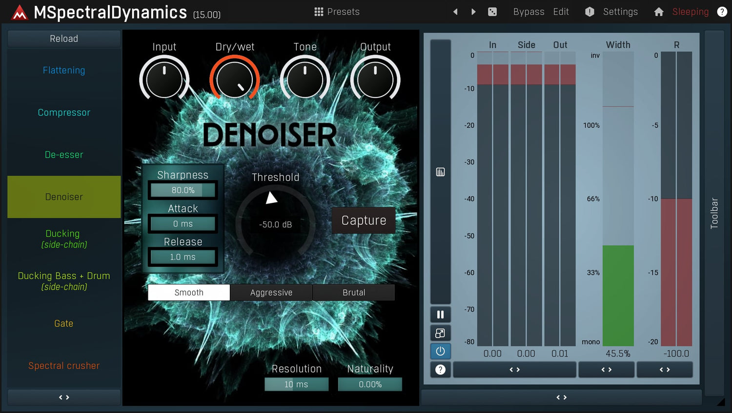 MSpectralDynamics is a true revolution in audio processing. It can flatten the spectrum, prevent collisions between tracks, remove noise, and open up a myriad of new creative possibilities.