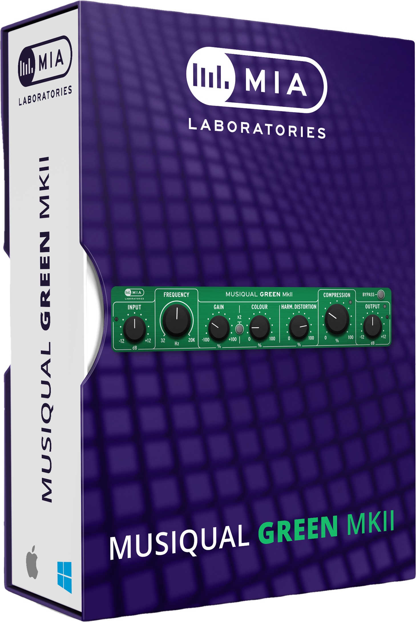The Compressor included in the Musiqual Green plug-in is tuned to match the Transistors character. It has a fixed attack and release setting and allows for an easy way to adjust the amount of compression applied to the sound.