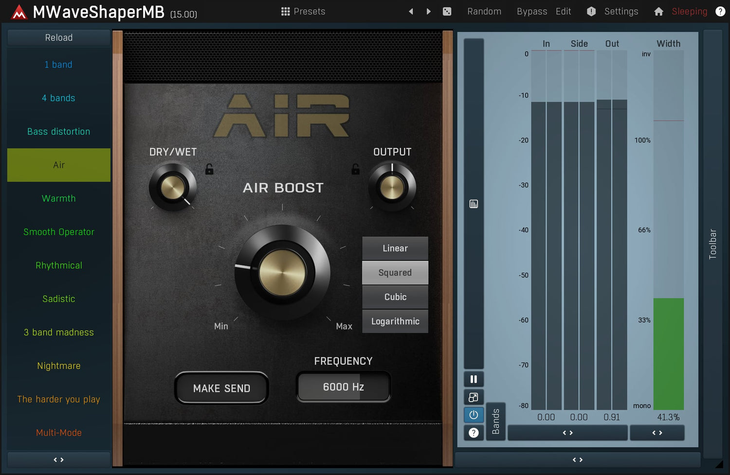 Waveshapers are the basic distortion modules but can be rather limited. But with MWaveShaperMB you can draw your own shapes and process up to 6 bands separately. Perfect for sound manglers searching for a really original distortion.