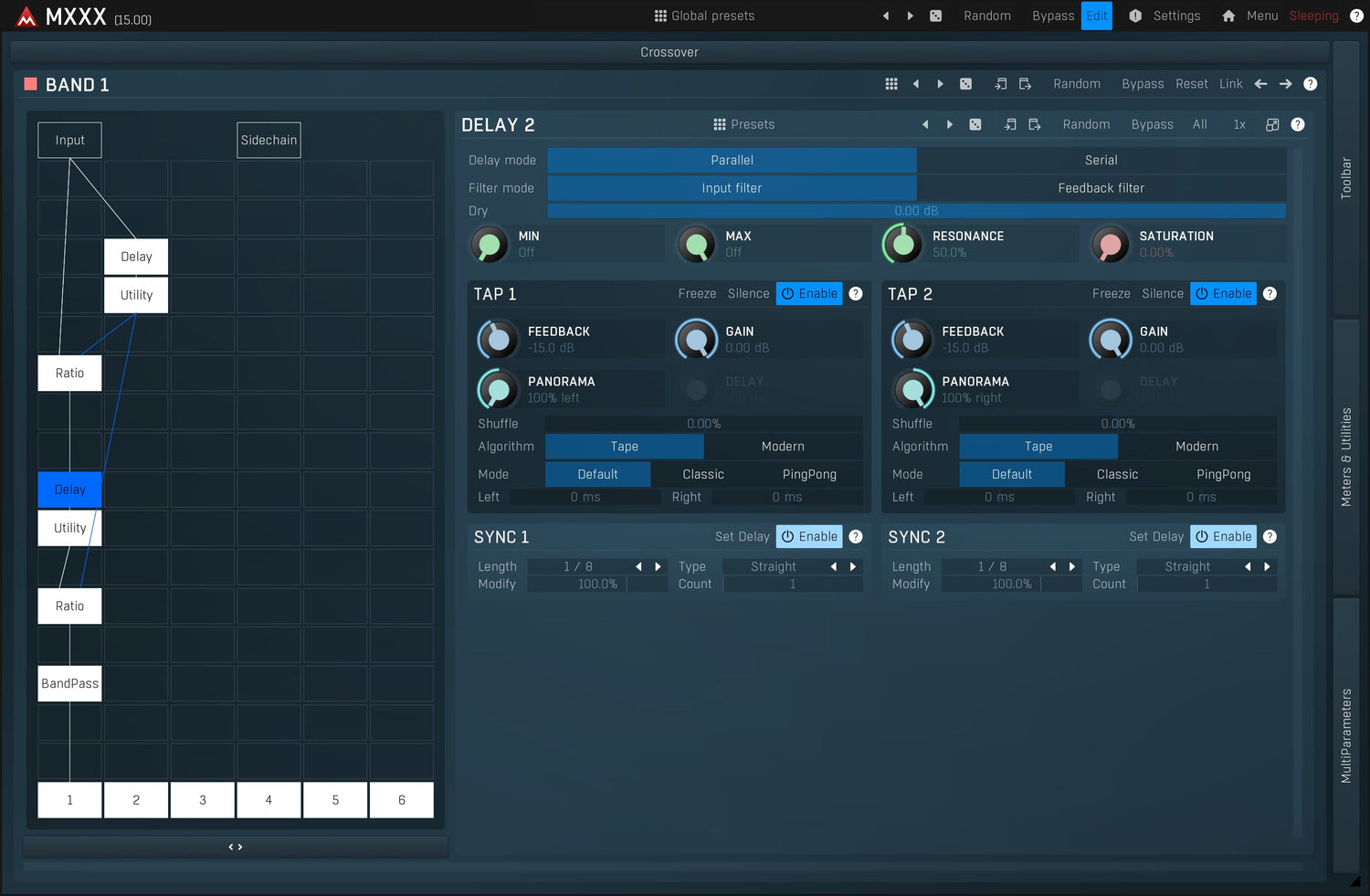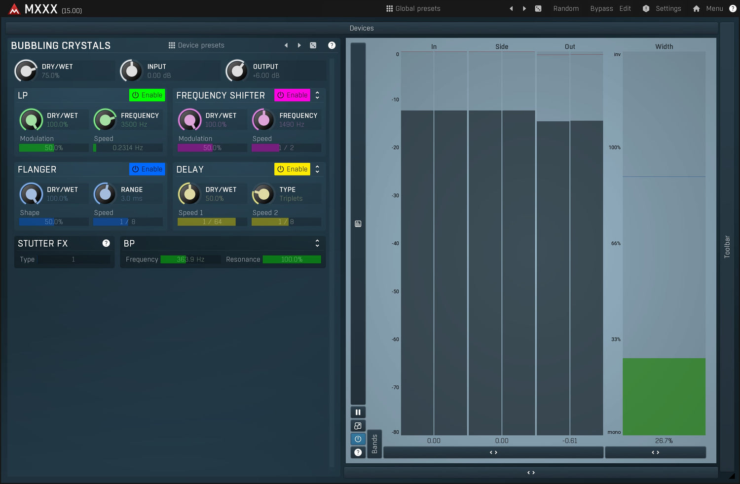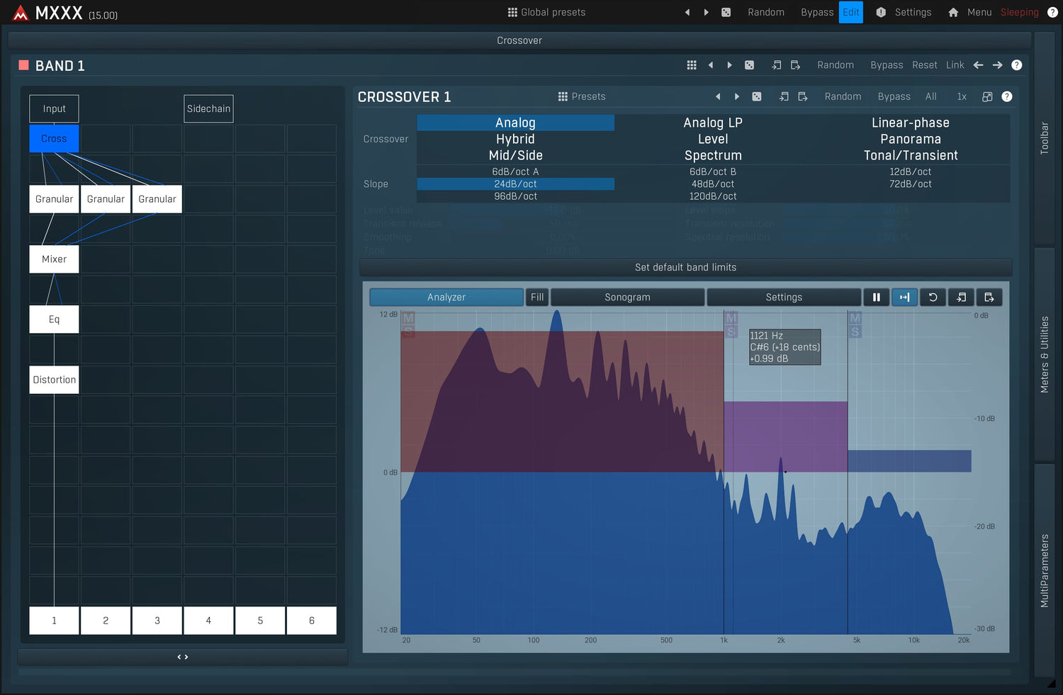 MXXX is the ultimate effect. It is a modular beast containing all our effects in a simple interface with an automatic routing matrix, super-versatile modulators and much more. It lets you do everything from simple equalization and compression to the wildest and most creative processing.