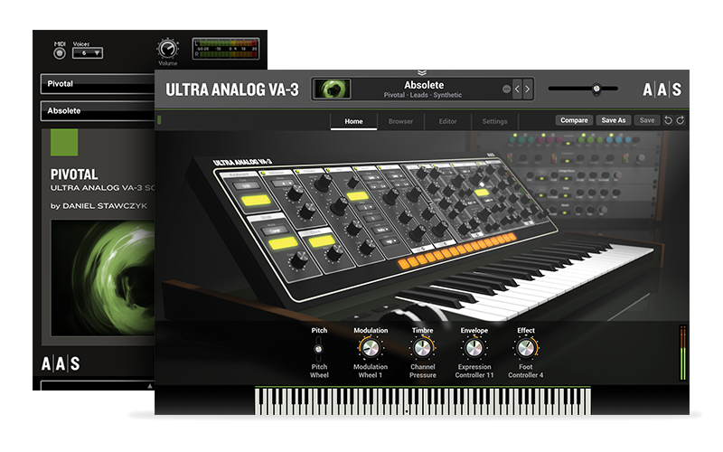 Pivotal is a sound bank for the Ultra Analog VA-3 synthesizer and AAS Player plug-ins in collaboration with sound designer Daniel Stawczyk.