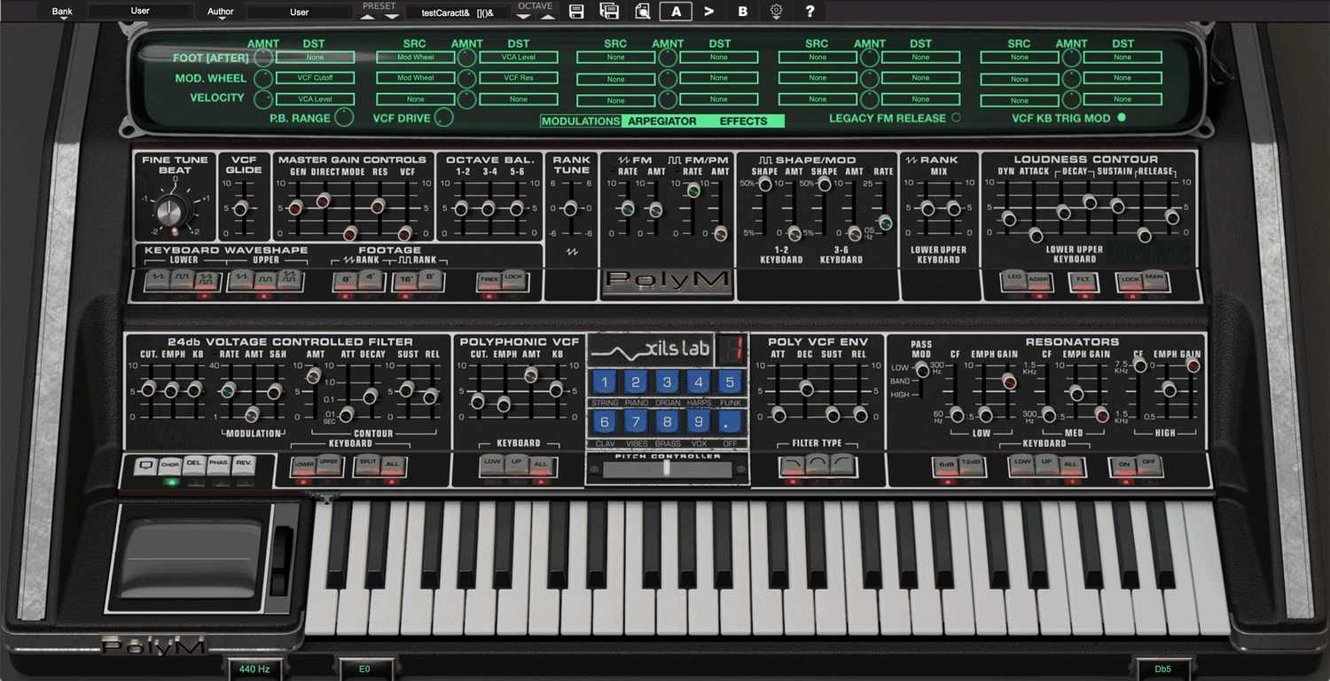 More than two years were spent analyzing the Polymoog synthesizer. It convinced XILS-Lab that the most important part in recreating the true character of the sound was the Top Octave Divider Oscillators. So, during several months, they worked on modeling the Polymoog's oscillators in a way no one else had before. They successfully developed a Divide Down algorithm that brings out the true sound of the Polymoog.