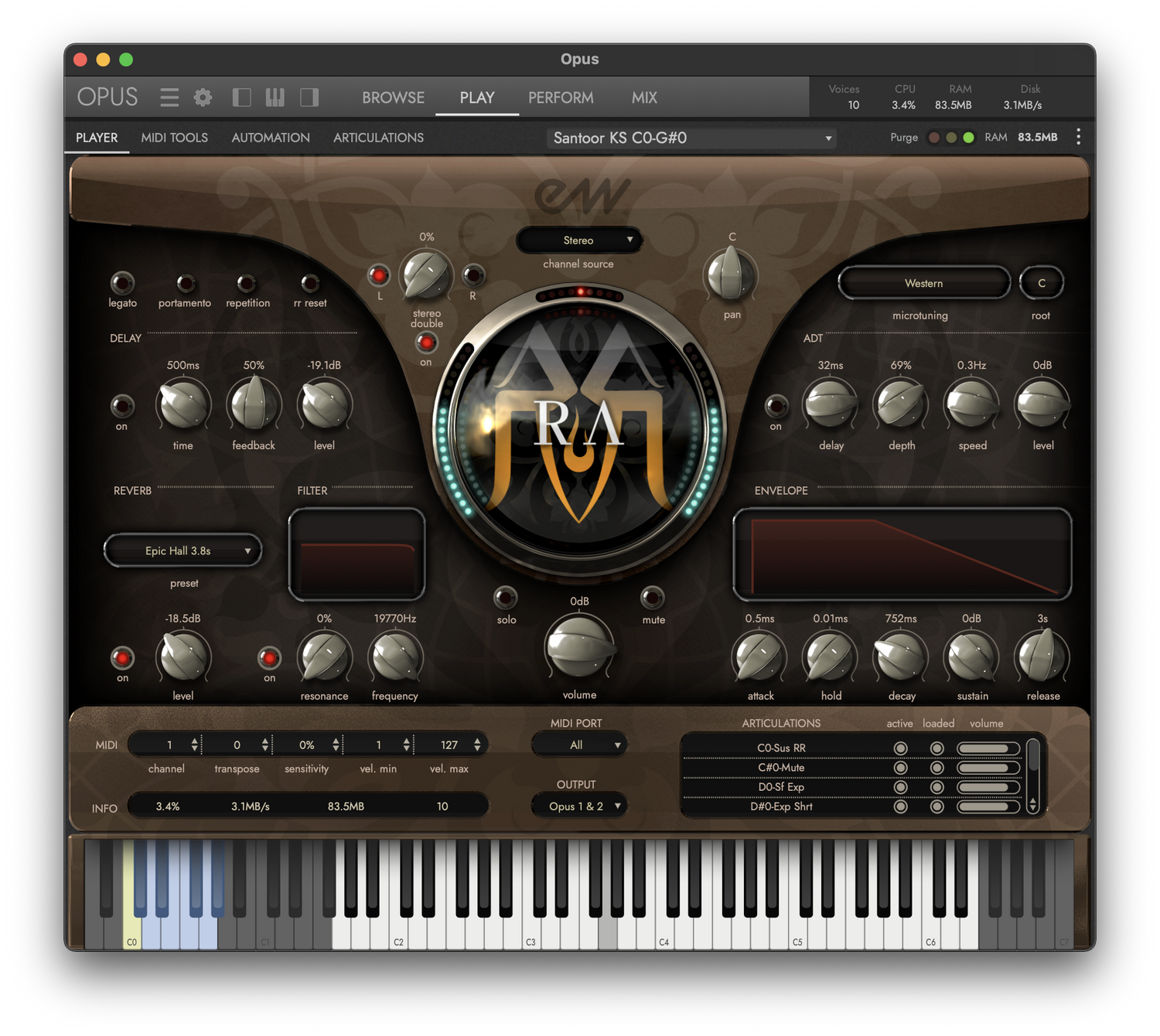 EastWest/Quantum Leap RA offre ai compositori l'accesso a una varietà di strumenti rari e unici provenienti da Africa, Europa, India, Americhe, Australia, Estremo Oriente e Imperi del Medio Oriente e Turco. I musicisti scopriranno che RA ha una qualità del suono straordinaria e rimarranno stupiti dall'articolazione di ogni strumento, che ha un'ampia gamma che va da controllata a espressiva. Tutti gli strumenti e gli ensemble presenti nella collezione sono stati campionati ampiamente come mezzo per preservare il vero carattere e l'espressione di ogni strumento. Per la prima volta, gli utenti avranno un maggiore controllo sui suoni offerti nella collezione insieme alla possibilità di caricare ancora più strumenti che mai.