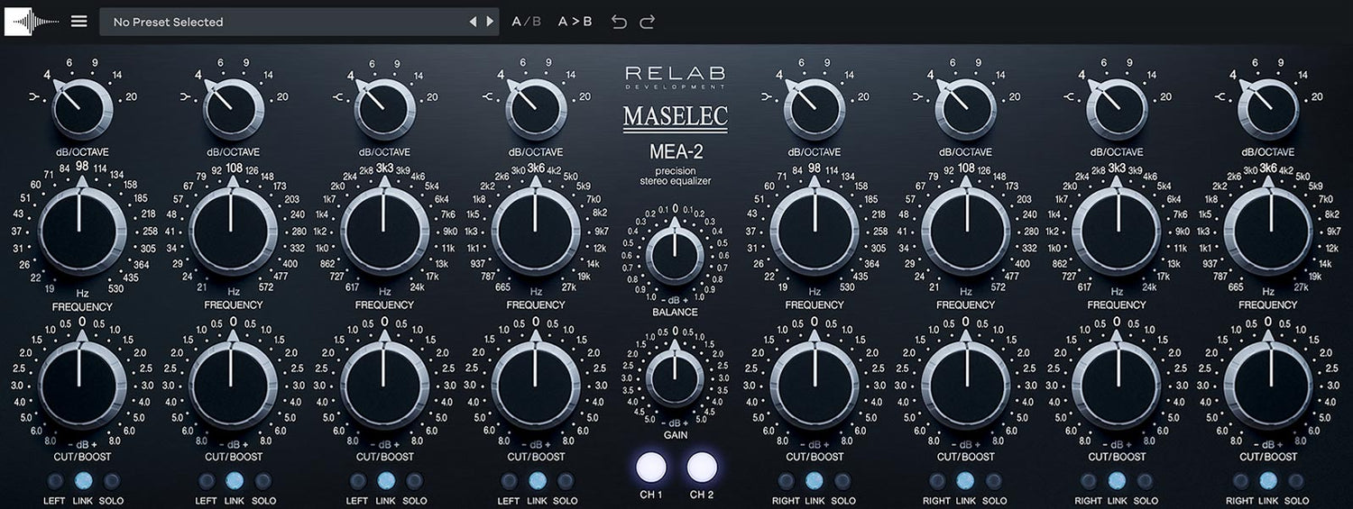 Il Maselec MEA-2 Precision Stereo EQ di Relab è una versione meticolosamente ricreata dell'iconico hardware Maselec, ora disponibile come plugin. Sviluppato in collaborazione con il rinomato ingegnere Leif Mases, offre un design EQ altamente musicale, sintonizzato a mano, con una curva Q asimmetrica unica e un'ampia shelving che fornisce un suono morbido e naturale. Presenta miglioramenti moderni come il controllo Mid/Side per banda, Solo Isolation e funzionalità di flusso di lavoro intuitive, rendendolo uno strumento essenziale per il mastering e il mixing. Con una precisione senza pari e un prezzo molto inferiore rispetto all'hardware originale, il MEA-2 è perfetto per i professionisti che cercano di creare un suono raffinato e di alta qualità.